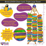 Birds LOVE Chew-Tastic Triple Tower of Shredded Fun Colorful Safe Lots of Wood to Chew - Large Bird Cage Toy for African Greys, Amazons, Eclectus, Cockatoos, Macaws and Similar Sized Birds