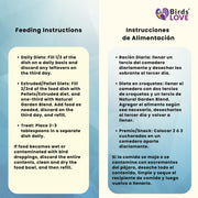 - No added preservatives nor sweeteners: natural sweet fruits to maintain healthy skin, muscles, and feathers